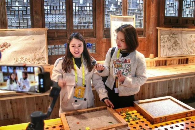 严香平向直播间网友介绍乌江寨花草纸体验夜幕下的乌江寨华灯璀璨如星河般耀眼,千家灯火重重叠叠,美不胜收。廻龙岛上的乌江星音乐水舞秀、无人机孔明灯演出、篝火晚会等精彩纷呈的演出互动,更是让人拍案叫绝。“恬静美妙的山水自然风光,浓厚淳朴的黔北民俗氛围,一口难忘的特色饮食文化,精彩绝伦的非遗传承表演都给我留下了非常深刻的印象。”贵州新闻图片社记者廖迅说道,“希望乌江寨能在旅游产品多层次开发等方面再接再厉,大力培育景区新业态,增强游客体验感,将全域旅游做得更加出色!”