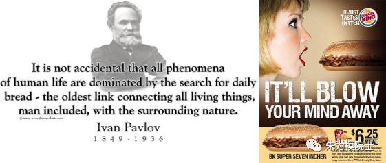 “民以食为天”也是巴甫洛夫在多年对“条件反射”研究以后对人做的结论(上图左);今天的商家对食物广告的精巧设计可谓发挥得淋漓尽致(上图右)。4. 警惕和消除“隐性”能量