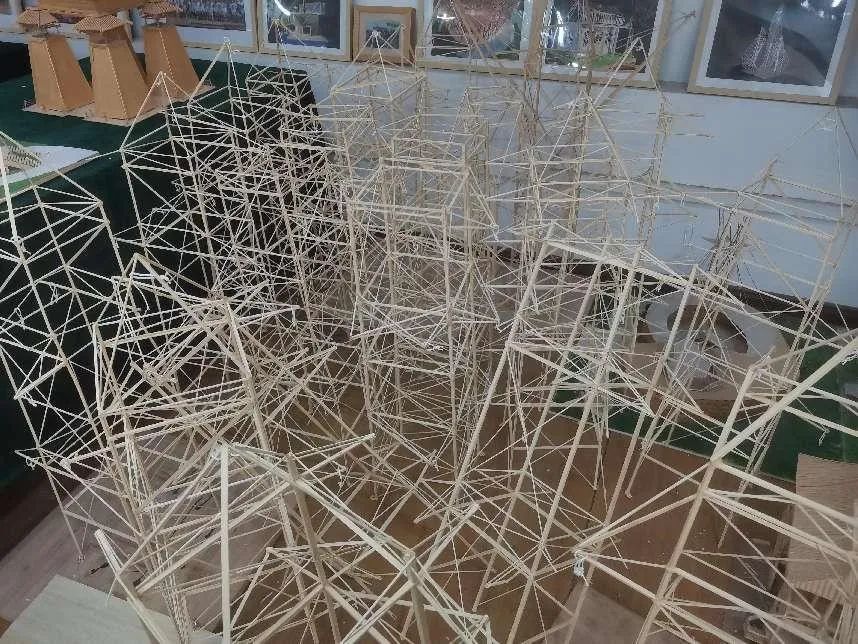 我校土木工程学院2020级学生陈星宏、徐双、孙传斌三位同学,在孙小鸾、赖韬老师指导下,以省赛四强入围决赛,最终决赛现场16个小时设计制作完成的模型“遇见塔”,凭借轻盈的重量(约3枚鸡蛋)、精致的手工以及稳定的结构,顺利通过三级满载(45kg,约280倍自重),斩获一等奖。