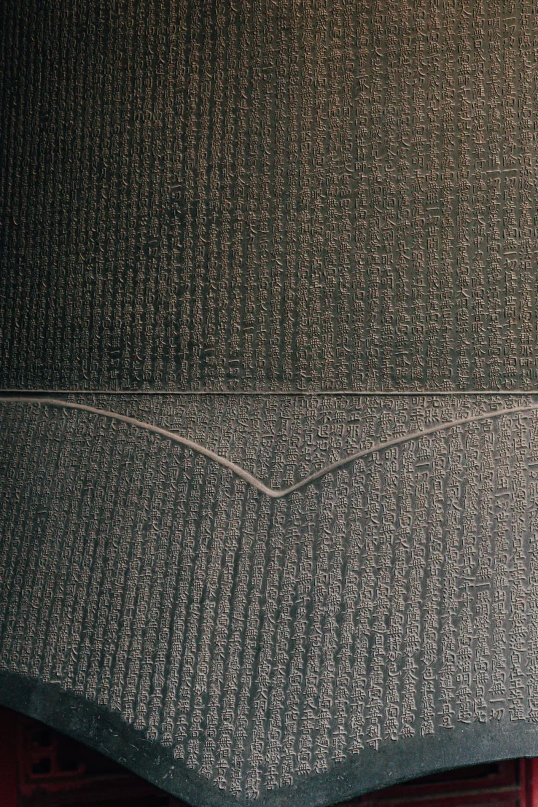 与永乐大帝有关的另一个寺庙,就是默默伫立在北四环路边、被人俗称“大钟寺”的觉生寺。禅宗行者、作家比尔波特写作《禅的行囊》,在北京城内参观的唯一寺庙,就是这座。觉生寺本身倒没什么太多可说,只是这其中,存放着世界铸造史的奇迹——永乐大钟,那是中国现存的最大青铜钟,据说猛地一敲,声音能传90里。更绝的是,钟体内外,密集镌刻着22.7万字的经文,大概铸钟者以为但凡闻此钟声者,都可获得这经文的功德之力。