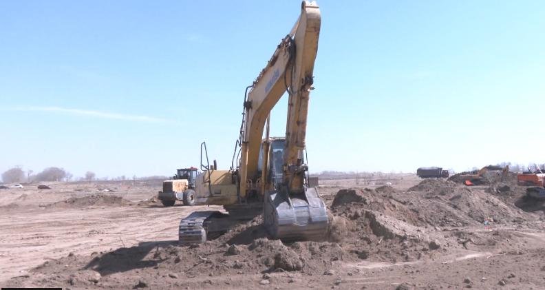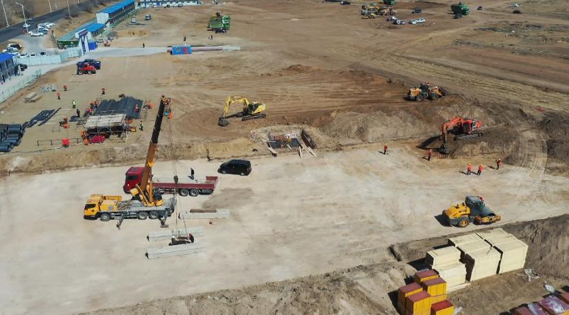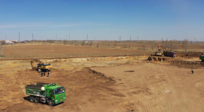 3月28日,在刚刚奠基开工的艾郎风电大兆瓦级风电叶片制造园,记者看到,园区基础建设已经开工建设,现场大型工程运输车辆往来穿梭,挖掘机、推土机、压路机等各种机械设备轰鸣声此起彼伏,一派热火朝天的施工景象。