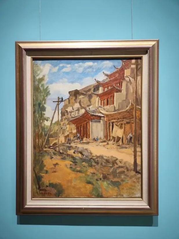 常书鸿在莫高窟工作继承中华优秀传统艺术,创造出新时代的艺术,可以说是常书鸿先生投身敦煌艺术事业的初衷。此次展出的临摹壁画不乏北魏第257窟《鹿王本生》、第217窟《佛顶尊胜陀罗尼经变》等临摹精品,代表了常书鸿先生早期临摹工作的成就。在工作之余,他更是走进敦煌及西北地区采风写生。《敦煌莫高窟四月初八庙会》《三危山的傍晚》等写生作品,表现了艺术家对敦煌的深厚情感。