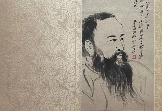 展览由一幅张大千的自画像拉开序幕。张大千一生曾画过许多幅自画像,此幅画作是其敦煌归来后,暂住成都昭觉寺时戏写后赠予友人。张大千以书法入画,运用洗练概括的笔墨描绘出自己的精神风貌,形神兼备。