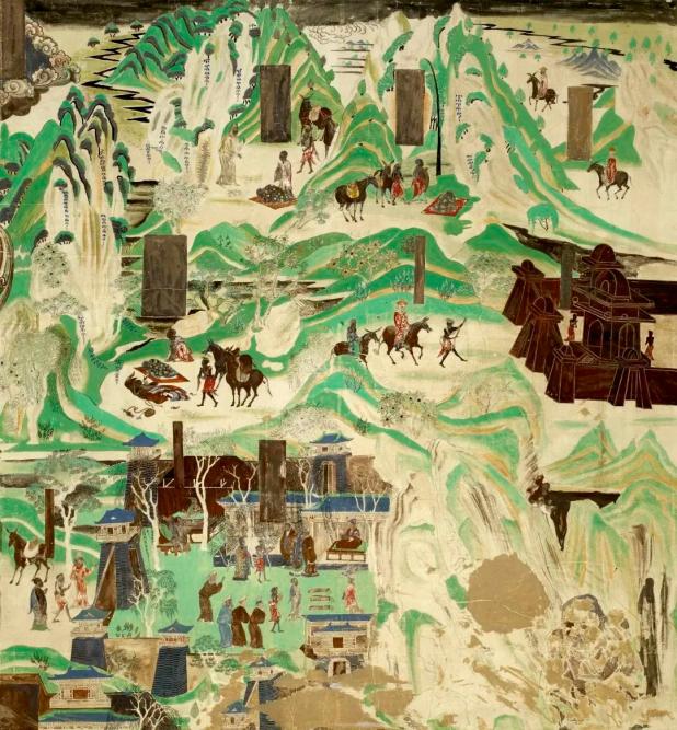常书鸿 临摹盛唐佛顶尊胜陀罗尼经变(局部) 敦煌研究院藏