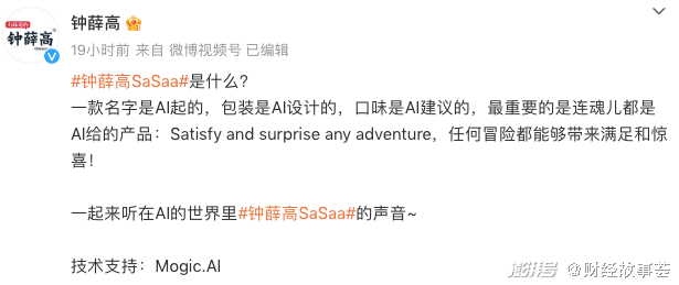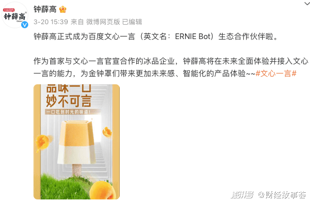 此前的3月20日,钟薛高曾官宣与百度文心一言合作,可以推测,此次Sa'Saa的AI设计开发可能使用了文心一言、ChatGPT等主流AI产品。