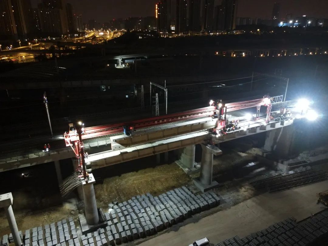 成自宜高铁全长约260公里,设计时速350公里。中铁八局架设线路跨越多个交通要道,沿线地质条件复杂,面临环保要求高、施工难度大、运输距离长等难题。截至目前,成自宜高铁桥梁、路基工程完成99%,无砟轨道完成约63%,全线进入静态验收前的最后冲刺阶段,预计2023年底全线开通运营。