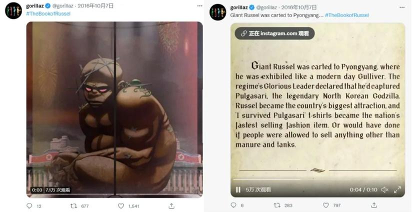 Gorillaz不仅通过MV、Twitter、Instagram等媒介逐渐发展出一个个极其复杂的故事,建立起了更为独立的虚拟宇宙,后期更是融入到了现实生活中去,乐队背后的思想体系也逐渐成型。