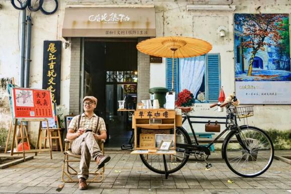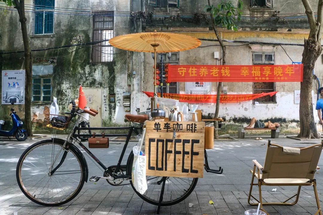 就在大街上,自行车便是它的摊子。咖啡有种神奇的魔力,不管在哪都不失优雅。