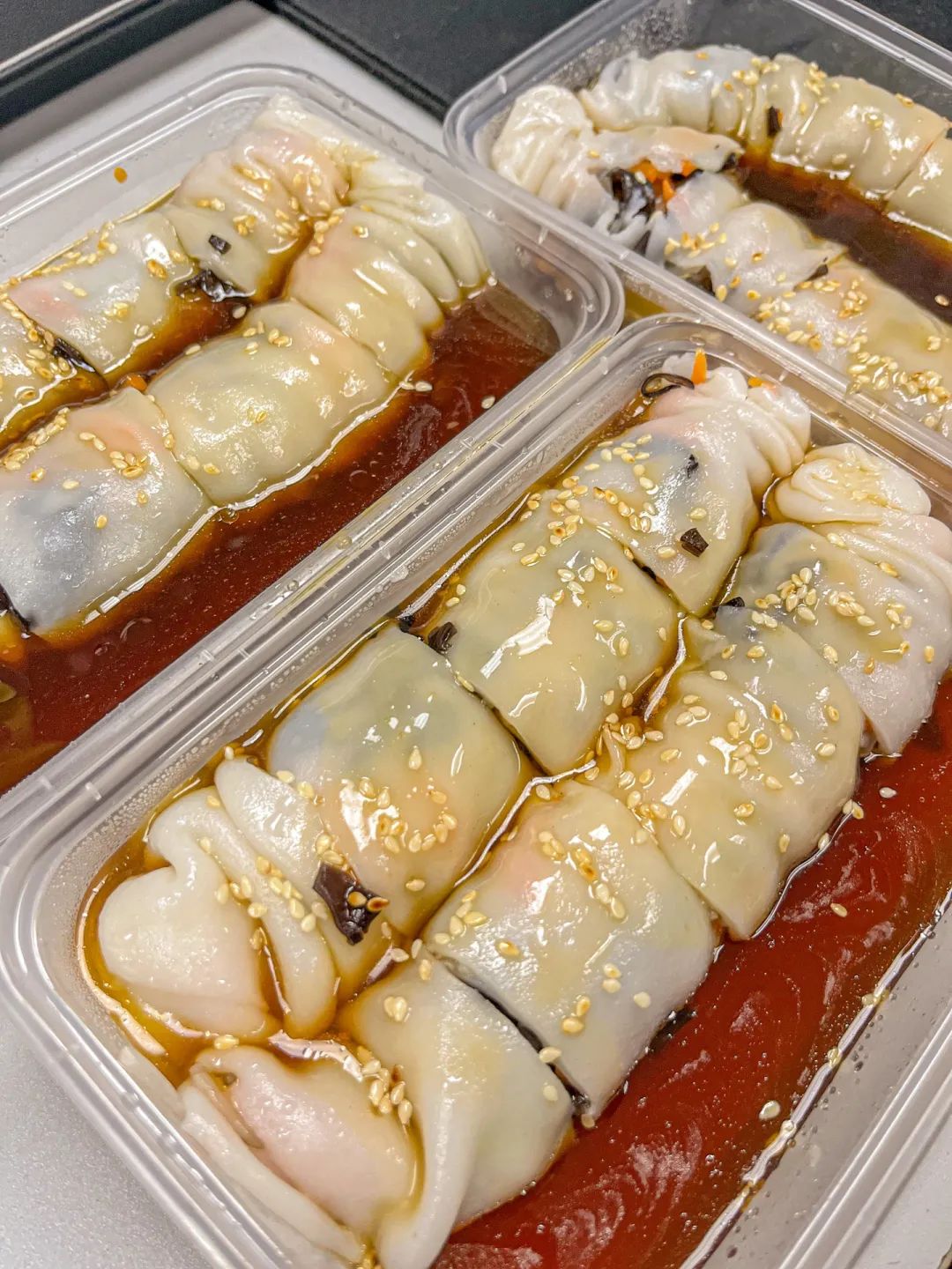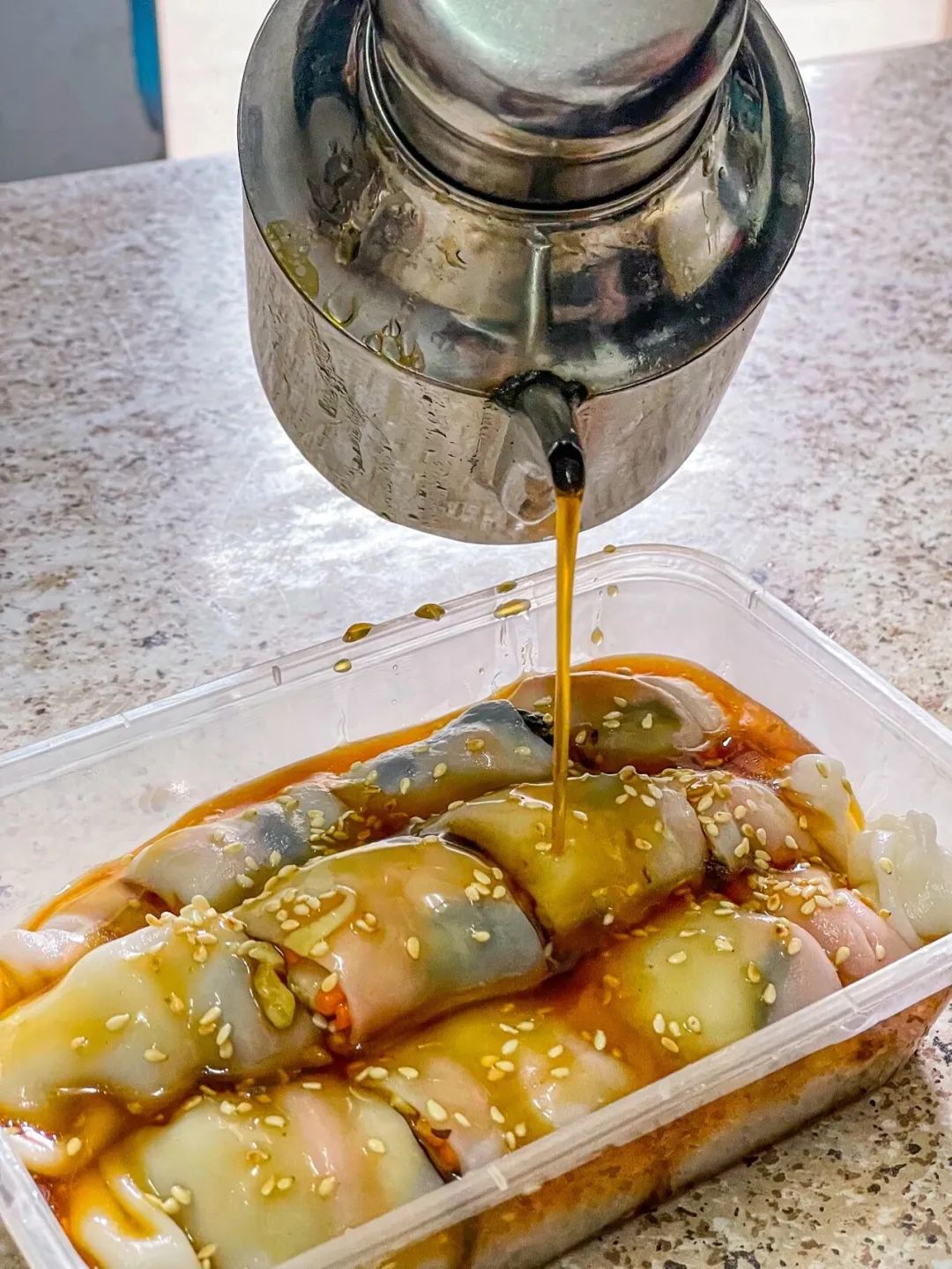 小红书@ Vitality他们家的肠粉一碟只要2.5元,白芝麻和蒜蓉的料足足的。肠粉质地很薄,配上特制的酱油,香甜无比。