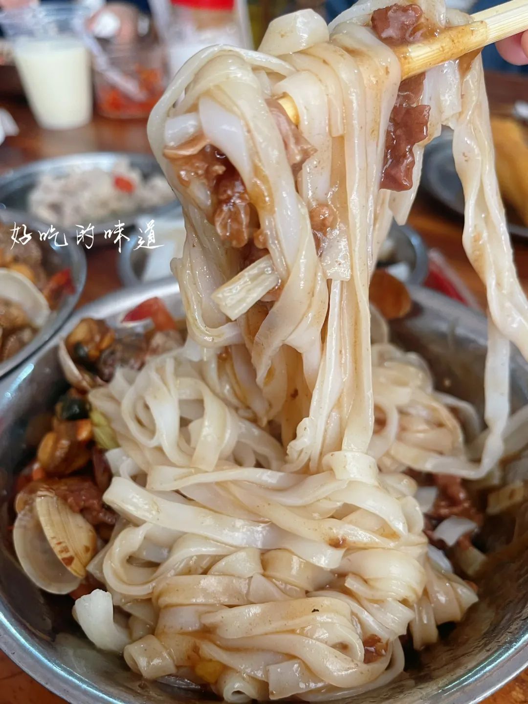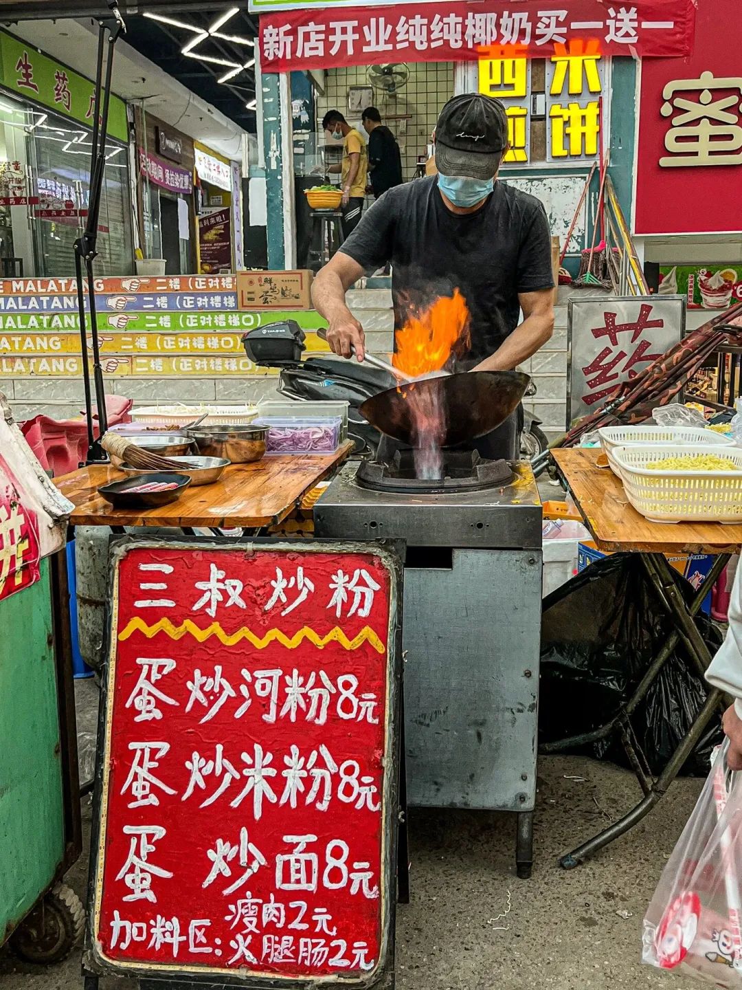 小红书@ 小团圆从下午一直排到深夜,炒粉的香气扑面而来,混合着辣椒味,锅气十足。