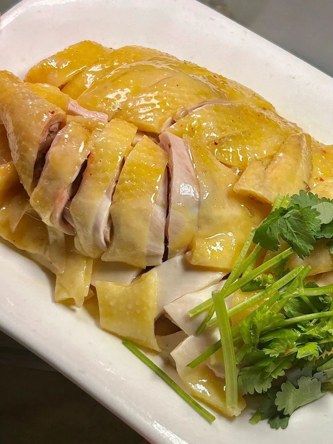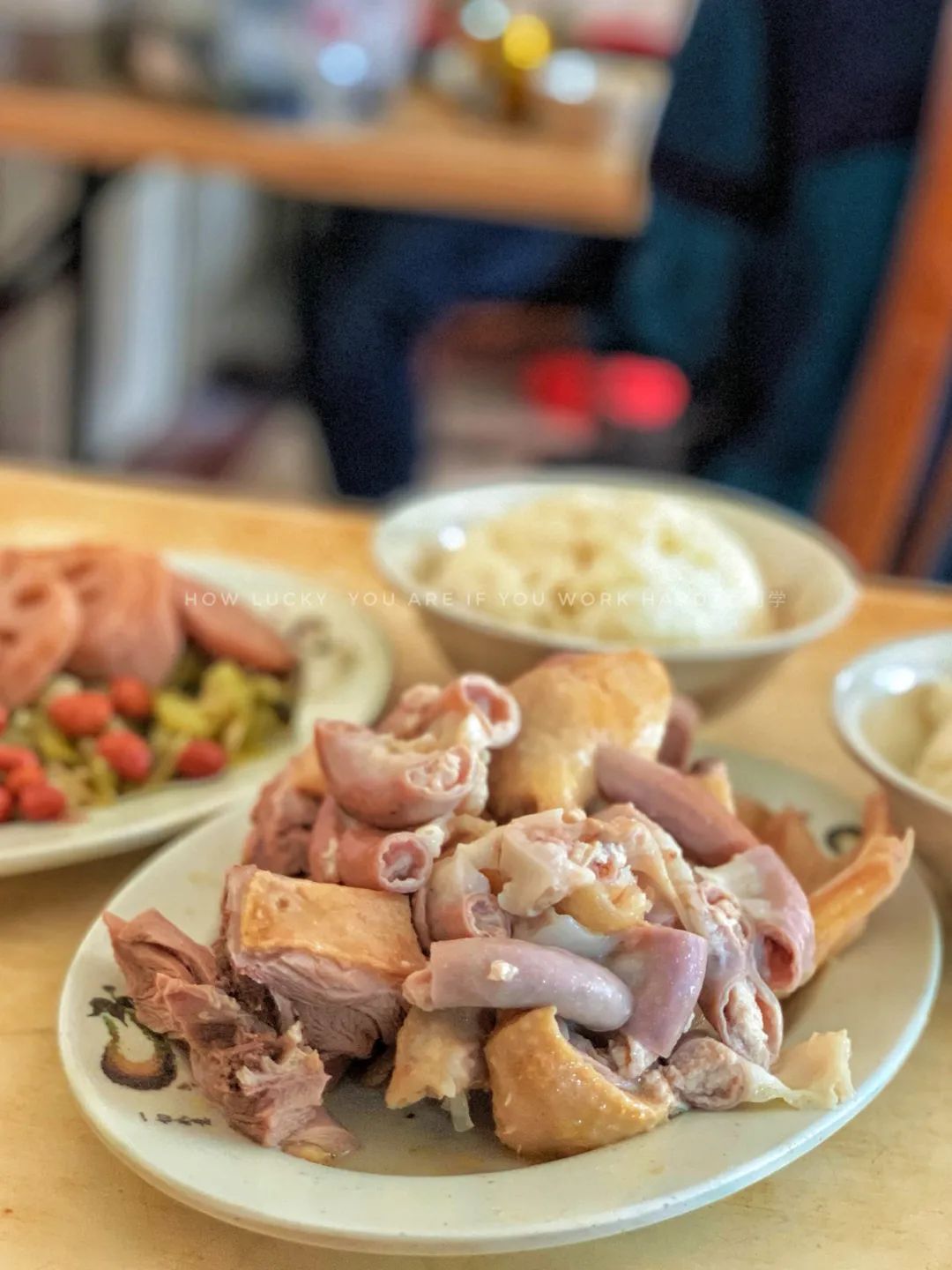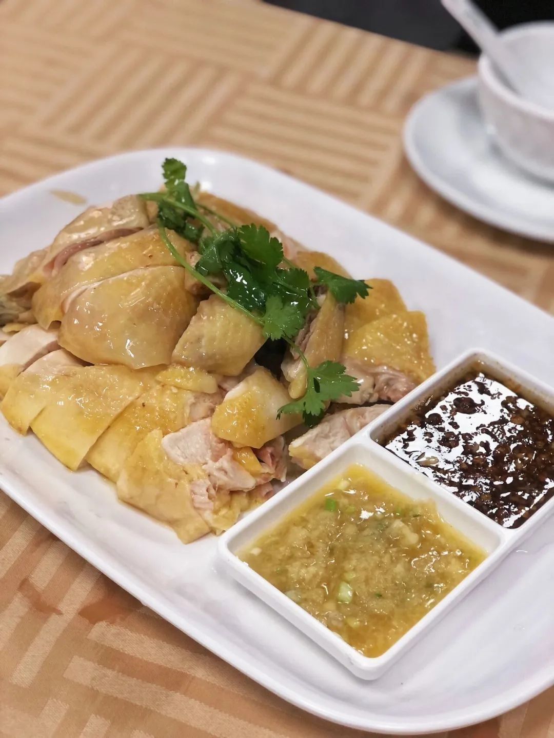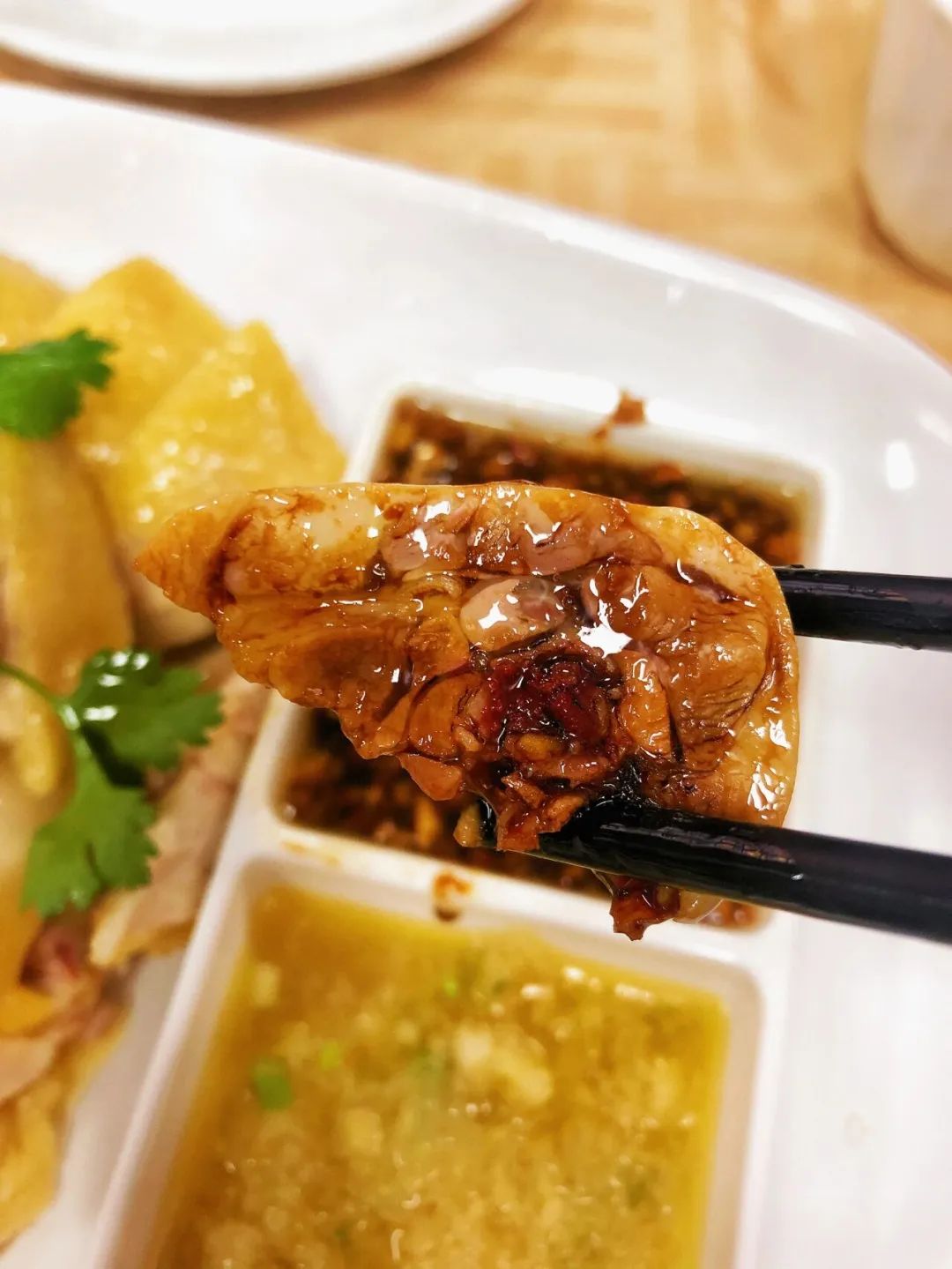 小红书@是五更啦他家白切鸡表皮很有光泽,鸡肉嫩滑,配有两种酱汁,还有盐焗鸡也是招,鸡肉味真的很香,在唇齿间蔓延。