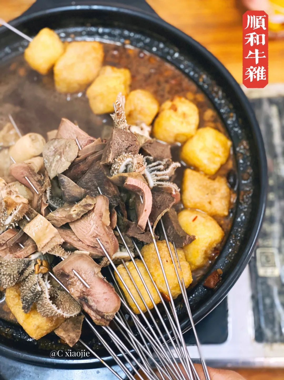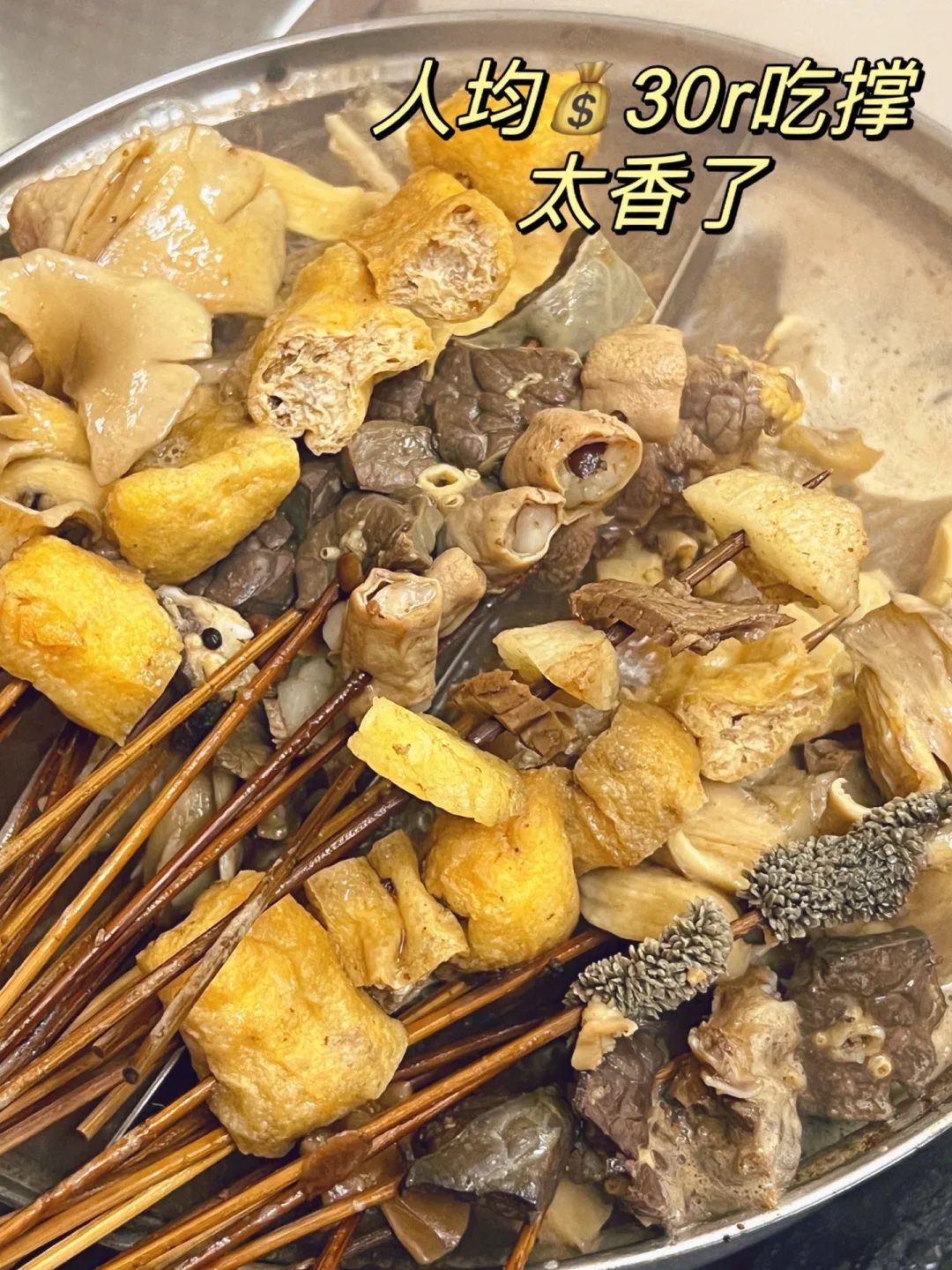 小红书@ 奔跑的五花肉香肠、香菇、包心菜、腐皮卷等等往油锅里滚了一圈,酥酥脆脆,再蘸上特制的酱料,香的不得了。