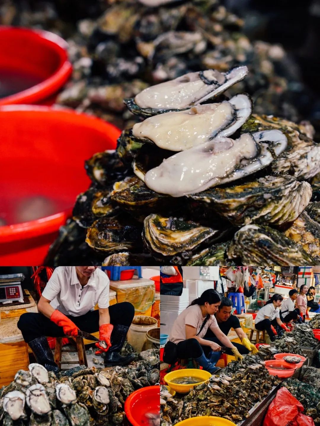 小红书@ W_yuki4蒜蓉烤生蚝、芝士生蚝、还有海鲜粥、湿辣牛肉都是经典菜品。一到夜晚,这里就是一个极具人间烟火气的深夜食堂。