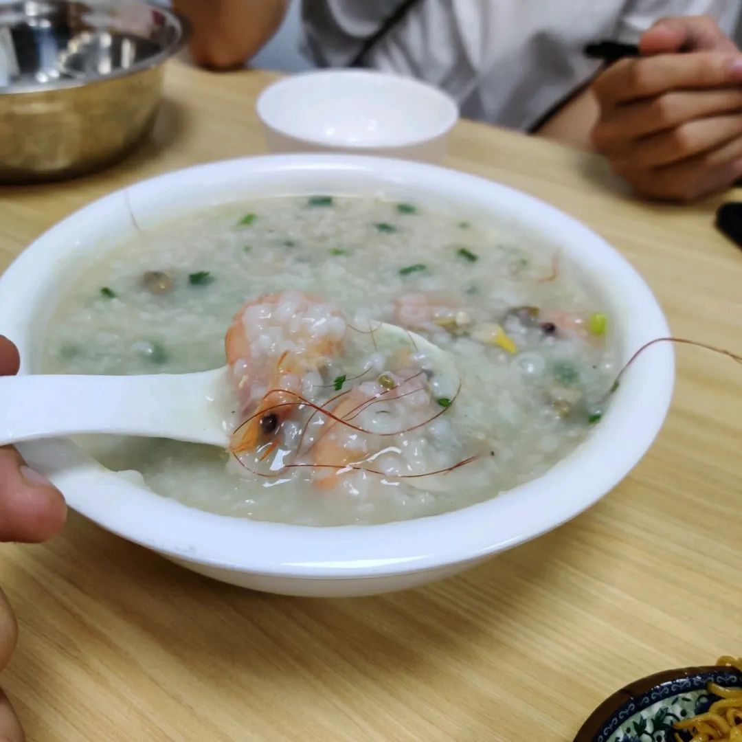 小红书@ 是我初心主角海鲜粥分量超级足,一堆海虾、沙螺、生蚝超多海鲜,越吃越惊喜。