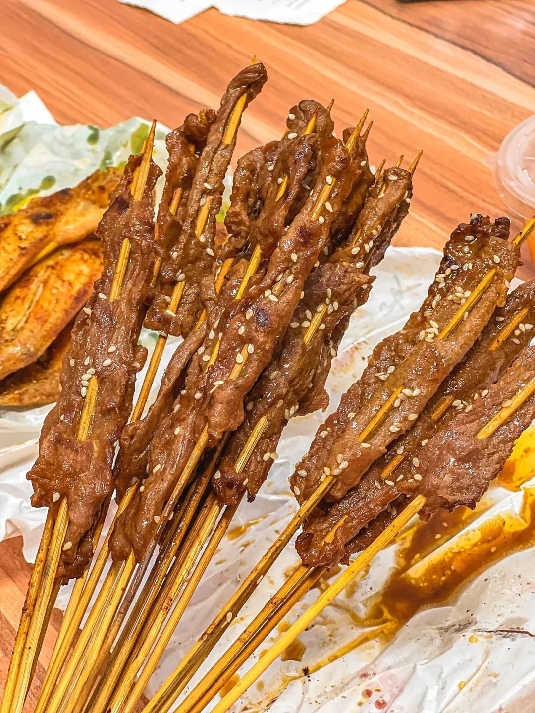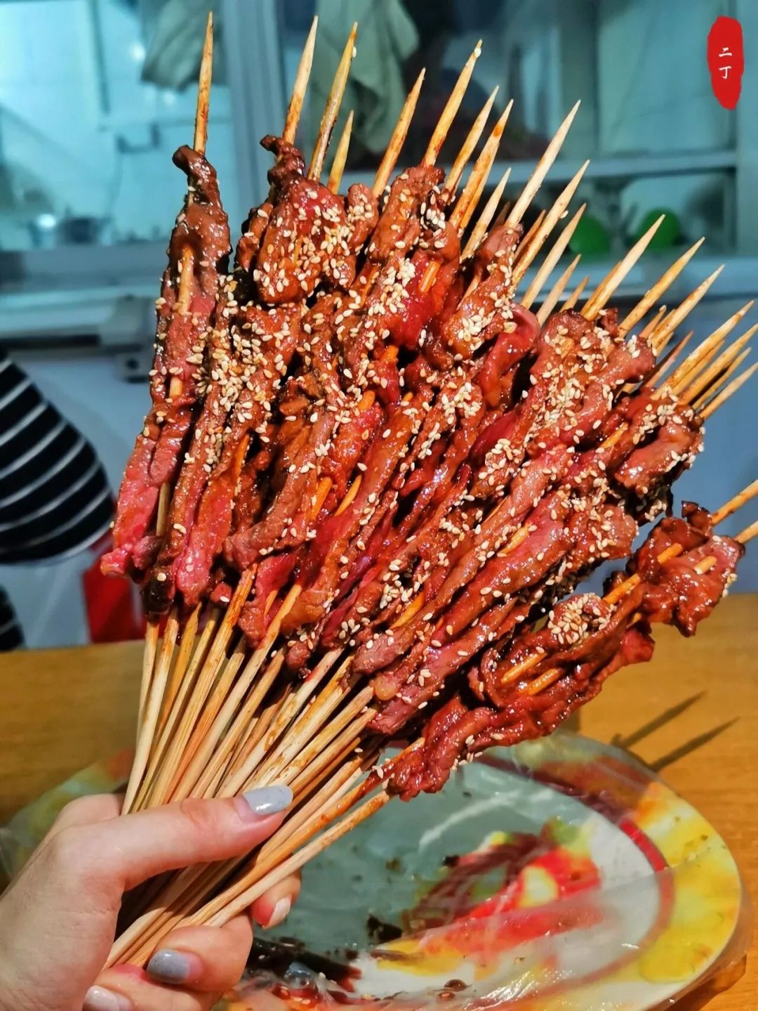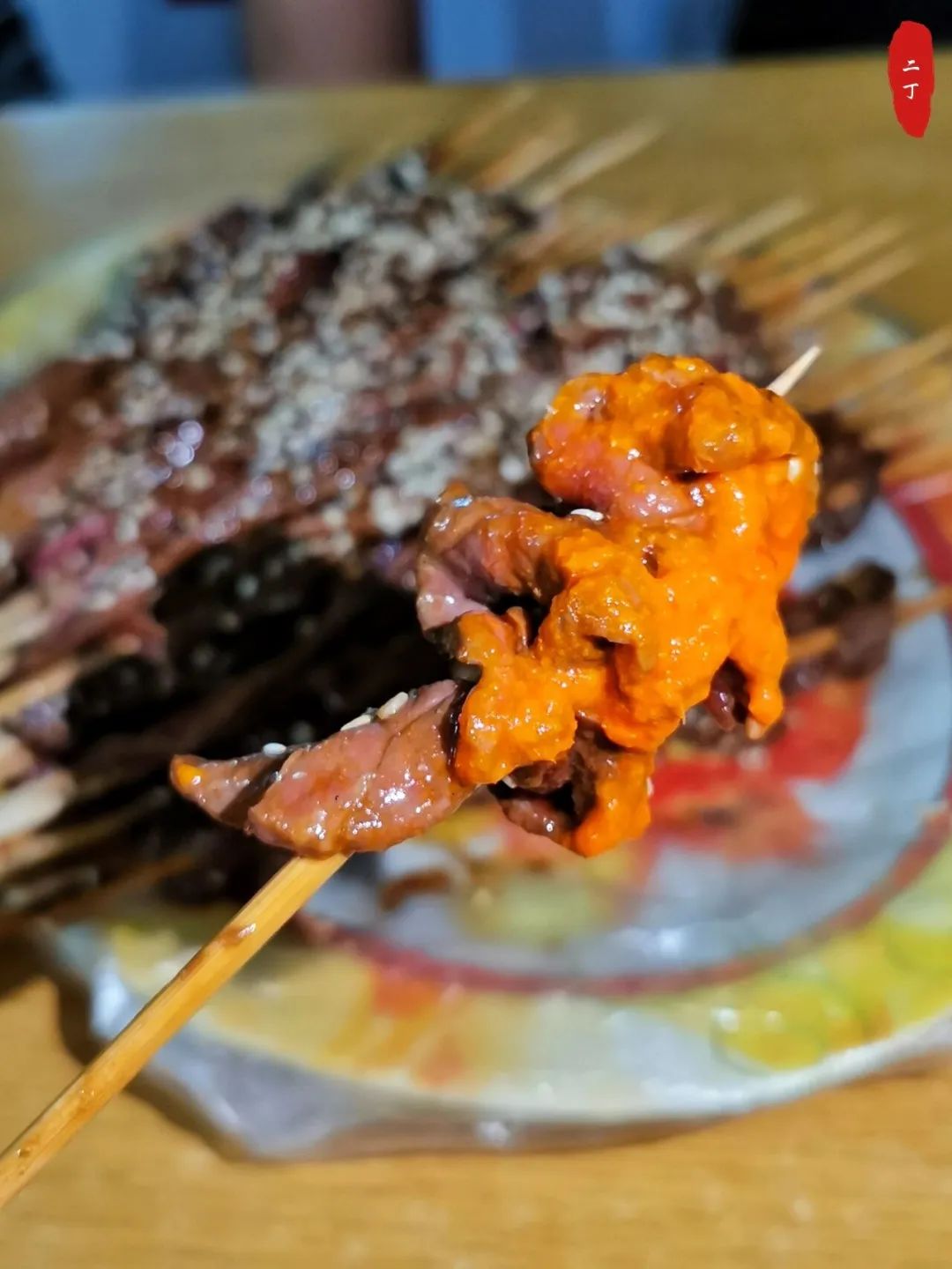 小红书@梁二丁让人上瘾的湿辣牛肉串,每一口都回味无穷,撒上特制的酱料,吃好几串都不够。