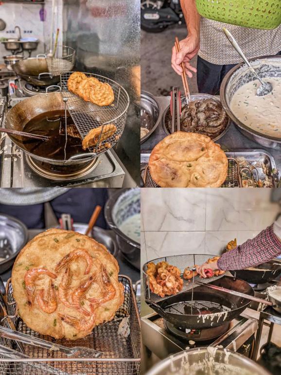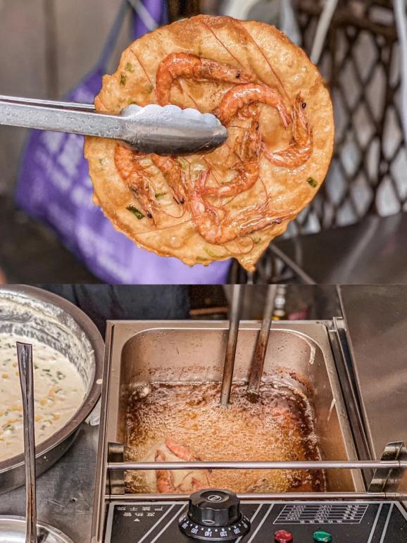 这家店可以说是炸货控们的狂欢地了,二十多个年头。最出名的就是炸虾饼,有5条鲜虾藏在里面哟。