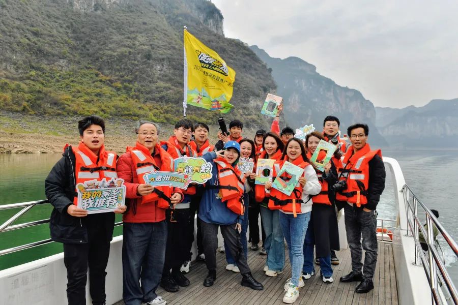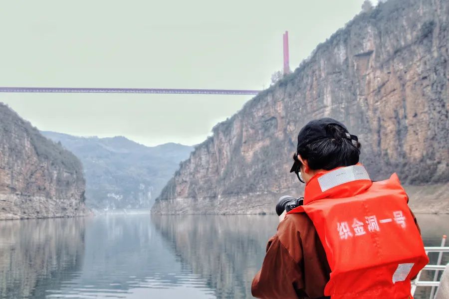 采风团成员乘船游览倚靠着栏杆,喜马拉雅媒介经理郭祖来用镜头记录下这一切。“没想到化屋村的深山里竟然藏着这样的壮美奇景!”他说。