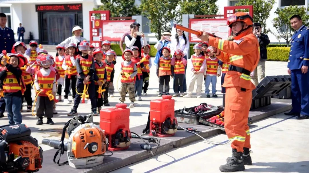活动中,孩子们对各种灭火、救援工具感到新奇,将指战员团团围住,叽叽喳喳说个不停。解说员也通过童趣的语言,边讲解边演示,为师生们讲解了装备器材用途及各个消防车的功能介绍。小朋友们还在消防员帮助下试穿了灭火战斗服、抢险救援服,体验当一次小小消防员。