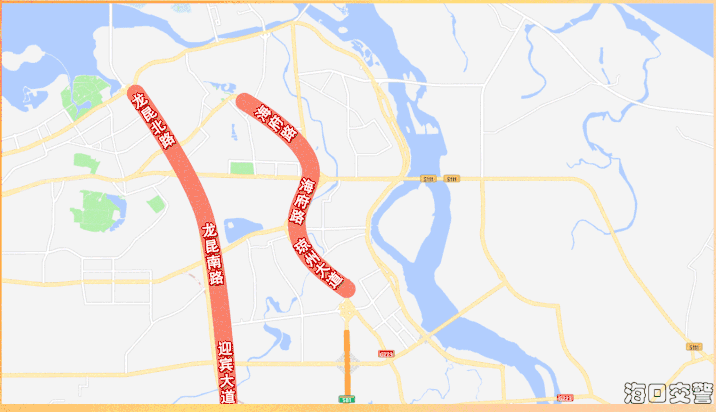 (一)国兴大道→琼州大桥→白驹大道如国兴大道交通流量大,建议途经驾驶人视情况择道绕行: