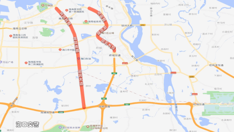 2、琼州大桥南片区(如琼山区)可绕行椰海大道→白驹大道前往海文高速。