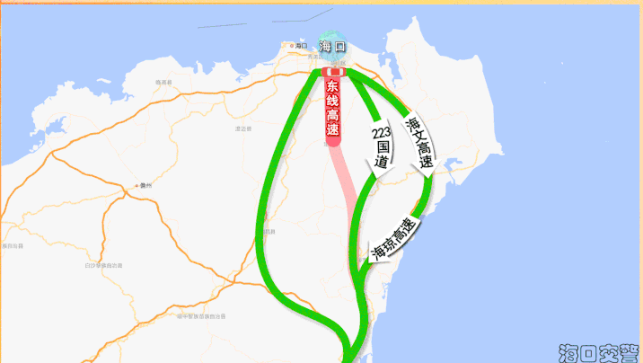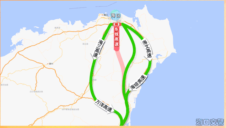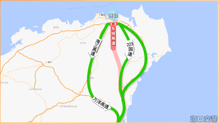 (三)东线高速海口管段如东线高速进出城流量大,建议途经驾驶人视情况择道绕行: