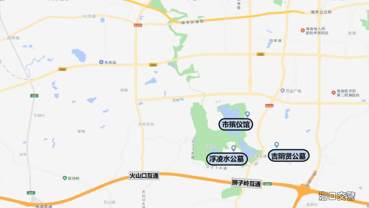 2、长彤路→火山口大道→绕城高速→狮子岭互通→海榆中线→墓园。