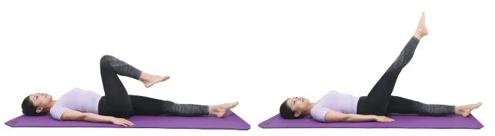 伸腰牵引法:患者仰卧床上(或瑜伽垫上),双上肢伸直放松,若为单侧腰痛者,痛侧的髋关节、膝关节屈曲,借惯力伸直下肢,以此来牵拉腰部;若是双侧腰痛者,可交替进行,每次行5~10分钟,每天行3~5次。