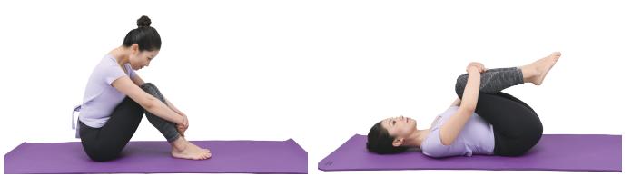 抱膝滚腰法:屈髋屈膝,双手相扣,抱于膝关节下,头部尽量向双膝靠拢,使脊椎背部后凸,利用自身力量,做摆椅式滚动。开始时因腰肌板硬,滚动1~2分钟后,待肌肉痉挛缓解,可加大滚动幅度,持续滚动3~5分钟。