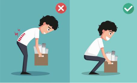 提 示预防“闪腰”主要是掌握正确的动作姿势,如扛、抬重物时尽量让胸、腰部挺直,髋膝部屈曲,起身应以下肢用力为主,站稳后再迈步,搬提重物时应取半蹲位,使物体尽量贴近身体。