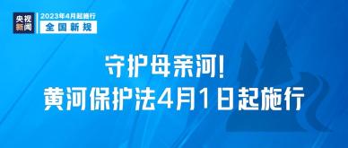《中华人民共和国黄河保护法》4月1日起施行。法律明确国家加强黄河流域生态保护与修复,实行自然恢复为主、自然恢复与人工修复相结合的系统治理;推进重点河湖环境综合整治;国家在黄河流域强化农业节水增效、工业节水减排和城镇节水降损措施;国家对黄河流域水资源实行统一调度。