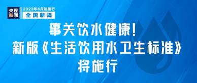 新版《生活饮用水卫生标准》4月1日起实施。新标准更加关注水质安全,强化对新污染物的关注;新增感官指标,有利于提升用水口感和舒适度。