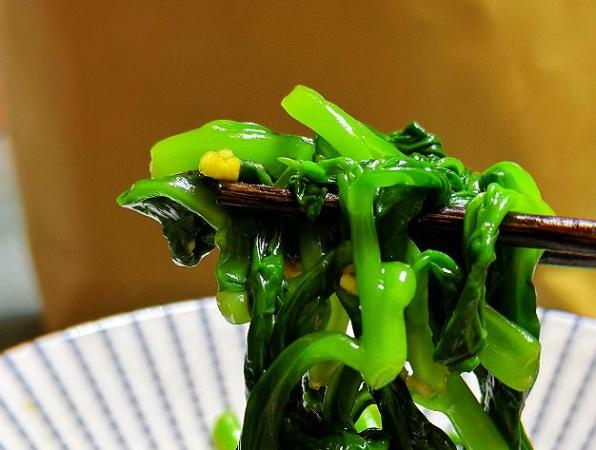 紫角叶300g、大蒜少许、生抽、醋、麻油