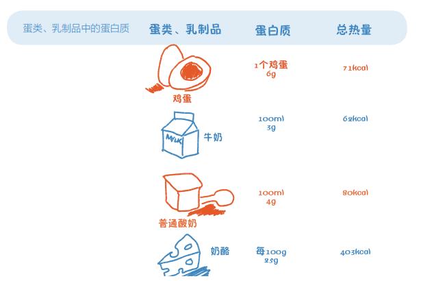 如何从膳食中获得足够的蛋白质:早餐:煮鸡蛋1个,低脂牛奶1杯,低脂奶酪+面包1片(蛋白质:6g+6g+5g=17g)