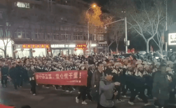晚上8点多,师生们徒步返回学校,受到市民夹道欢迎英雄气概,代代相传