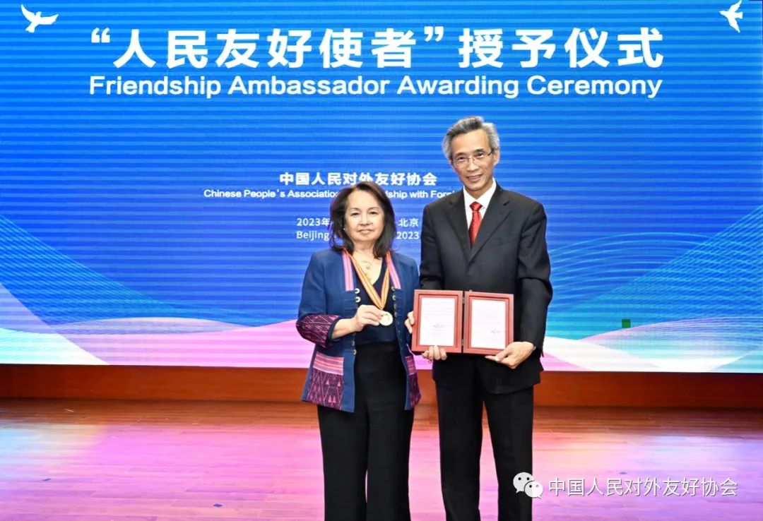 中国人民对外友好协会授予菲律宾前总统阿罗约“人民友好使者”荣誉称号