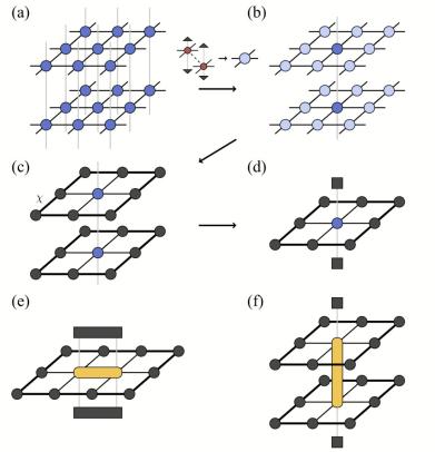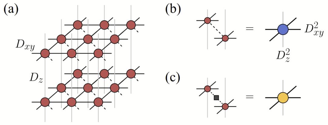 受张量网络在一维和二维系统中巨大成功的启发,这项最新发表于 Physical Review Letters 的研究,介绍了一种基于无限投影纠缠对态(entangled-pair states)的高效张量网络方法来处理分层二维系统。从各向异性三维无限投影纠缠对态假设出发,论文提出了一个收缩方案,在该方案中弱相互作用层被有效地从层的中心解耦,以便可以使用二维收缩方法高效地进行收缩,同时保持层的中心连接,以捕捉最相关的层间关联。