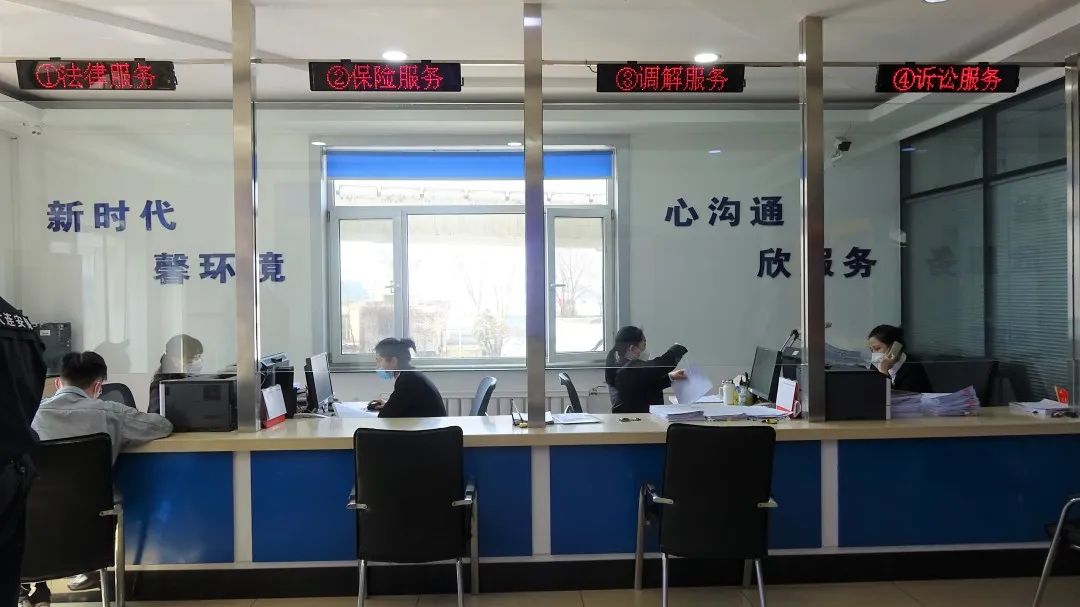 法庭服务大厅设有四个服务窗口,即法律服务、保险服务、调解服务、诉讼服务,为当事群众提供了从责任认定、保险理赔、法律咨询、法律援助、司法鉴定、行业调解、司法调解、诉前调解,到民事诉讼、诉讼保全、立案审判等全流程一站式服务,有效避免当事群众多头奔波,极大地方便了当事群众。这里除立案诉讼的案件外,其余全部免费为当事群众提供服务。