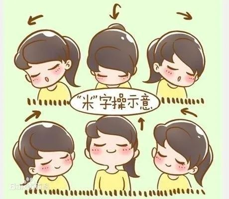 以头顶或下颌为笔头,用颈作笔杆,反复书写“米”字,每次书写5~10个字。
