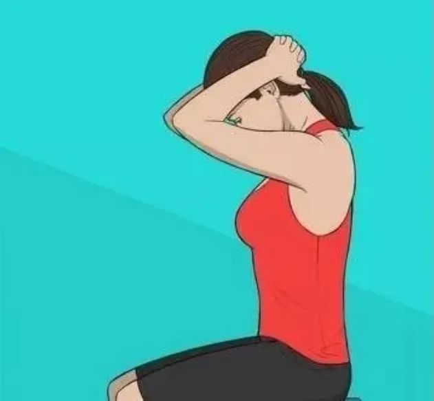 右耳靠向右肩,左肩向后向下,抬起右手举过头顶,把手放在左侧耳朵前后上,这个动作可以拉伸斜方肌上部,保持呼吸30秒,接下来换边。