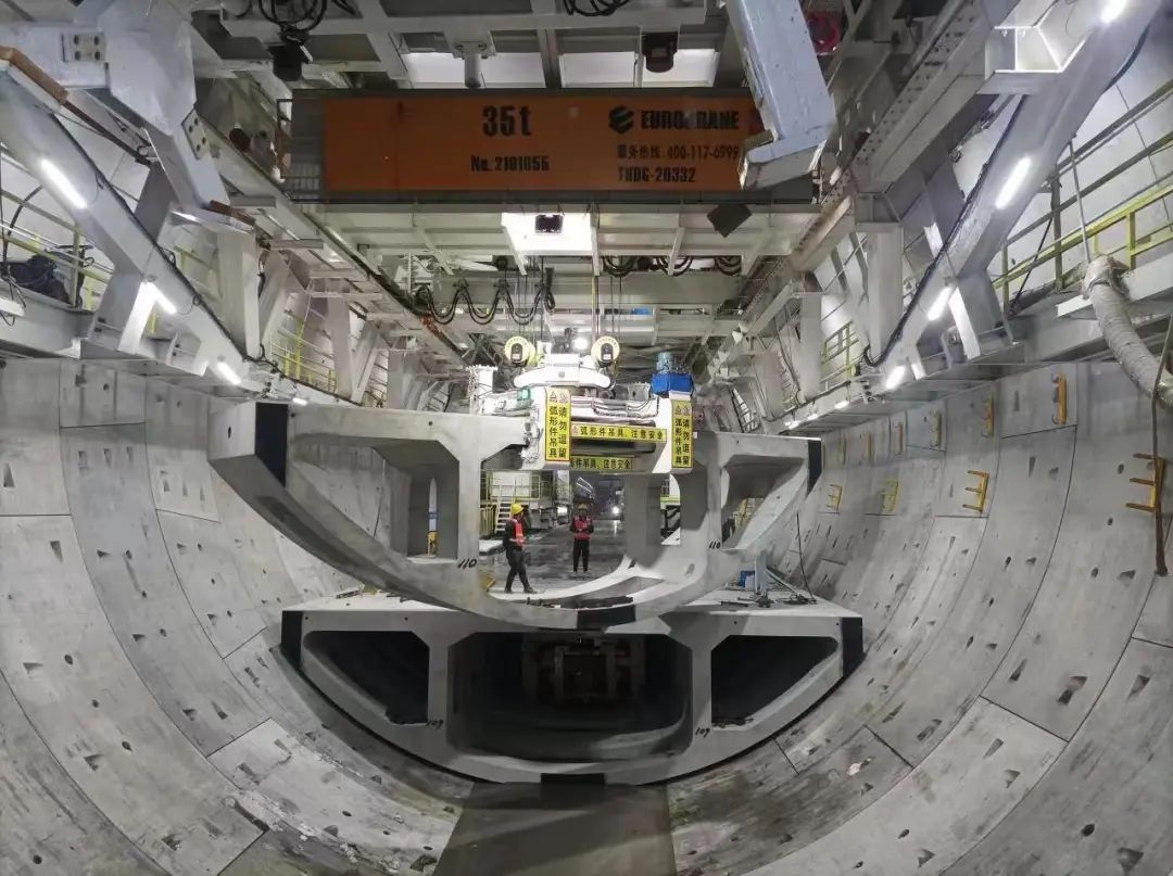 目前“东方号”盾构机日均掘进9至10环,管片错台、管片间隙均控制在3毫米以内,管片上浮量控制稳定,地表沉降控制在3毫米内,确保隧道施工“零事故”,实现7.8万平方米隧道内“零渗漏”。