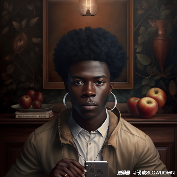 “上面这张图片是当时V4生成的,使用了黑人、复古、室内、听音乐、灯光等关键词,除了手指是6根,其它都很完美了。V4生成出来的人像基本是一个人的大头照,比较单一,到V5就非常多样化了,各种景别都有。”