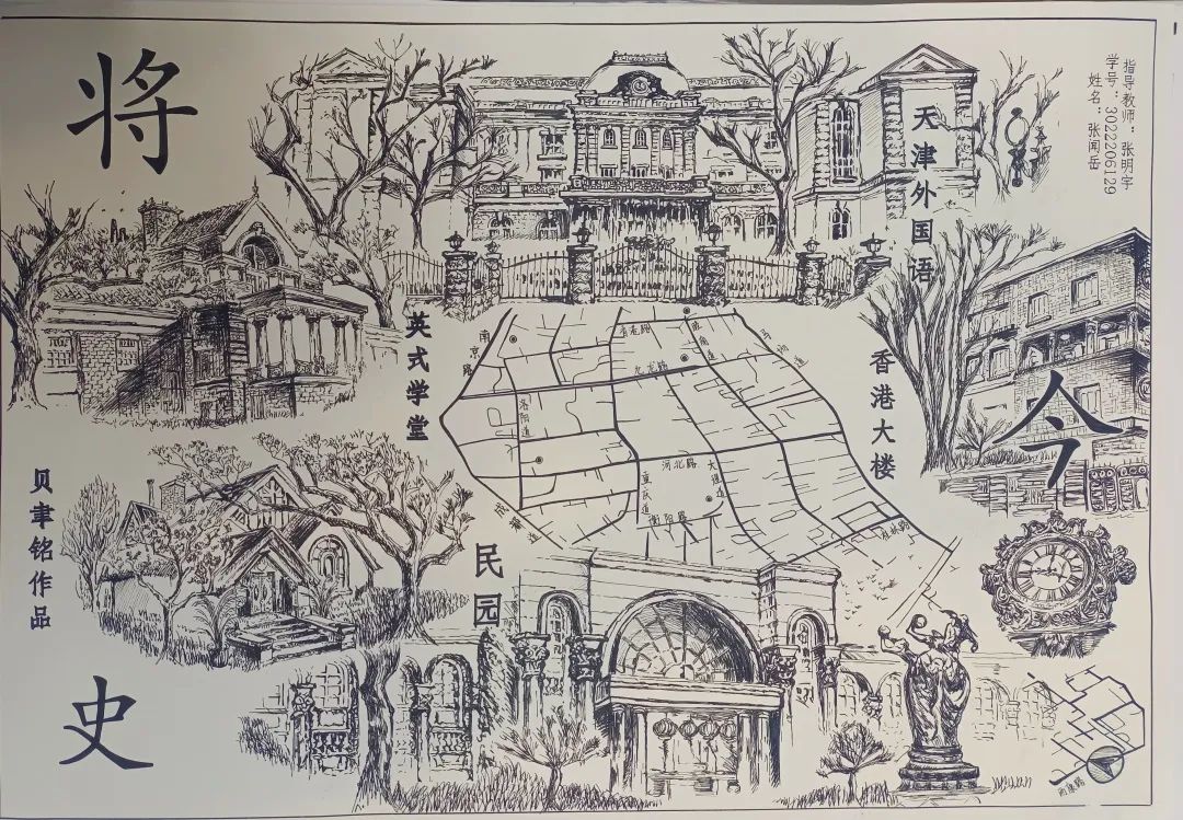 在《建筑设计基础》这堂课上,天津大学建筑学院大一学生们走出教室,用手中的纸和笔绘制了风格独特的五大道地图,勾勒出心中热爱的津城美景,也是“城市孕育大学,大学滋养城市”的生动诠释。