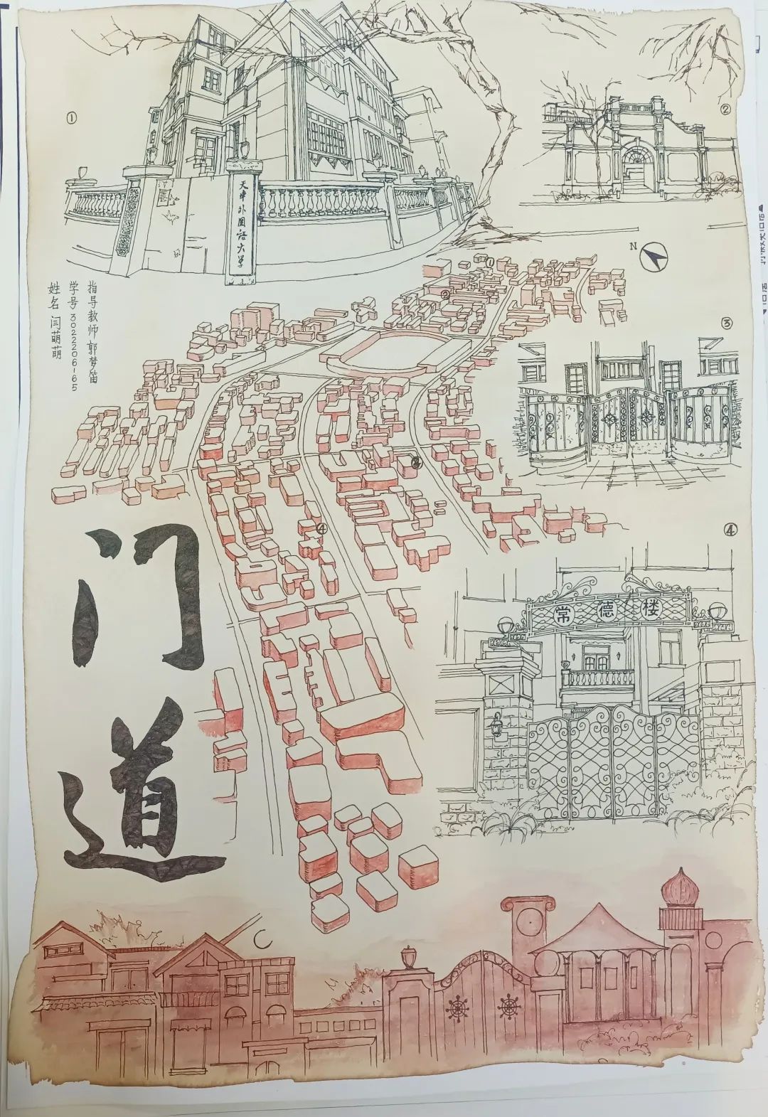 天津是一个文化内涵、建筑内涵丰富的城市,五大道则是天津最具代表性的地标区域之一。整个作业的任务周期是三周,包括从实地考察、选题到最终成图的整个过程,可以说是一个比较大的“工程”。