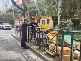 接到举报热线近日,徐汇区凌云路街道综合行政执法队接 12345 市民热线投诉反映,在嘉川路龙州路路口以东,梅陇七村南门、梅陇八村北门交界处,存在占道分拣、堆放、收发快递的情况,影响市容的同时,也给周边居民正常通行带来安全隐患。