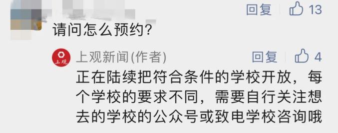 目前,包括长宁、静安、杨浦、崇明等区都已公布了开放学校的名单和开放时间。