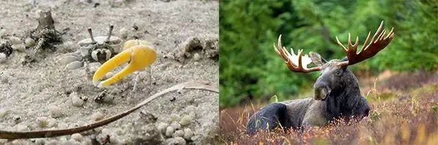 在动物王国中,如果一只雄性的性别化特征非常明显,那它可是个大帅哥。没有哪只雌性能拒绝招潮蟹那硕大的螯在自己脑壳上发出的噼里啪啦声,以及驼鹿头上顶着的那两扇大角也是争得雌性放心的重要特征。