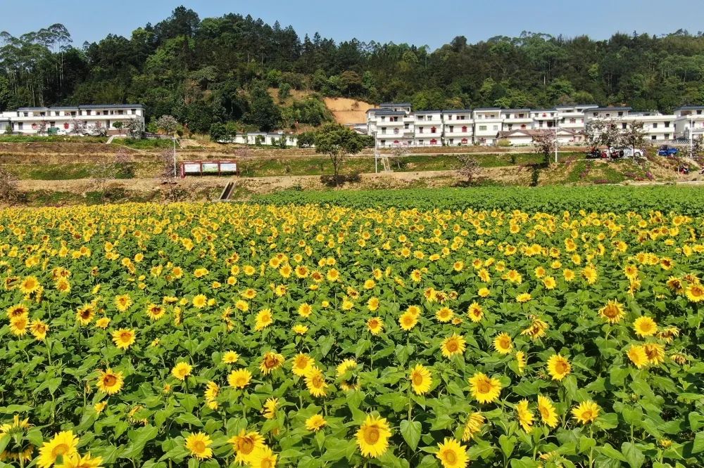 除了酿酒产业,春日阳光下的上水田村,油菜花随风舞动,向日葵灿烂绽放,更是成为赏花踏青的打卡地。