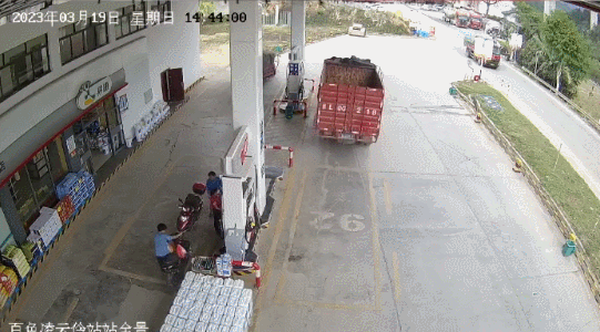 3月19日一辆货车行驶经过广西百色凌云伶站加油站