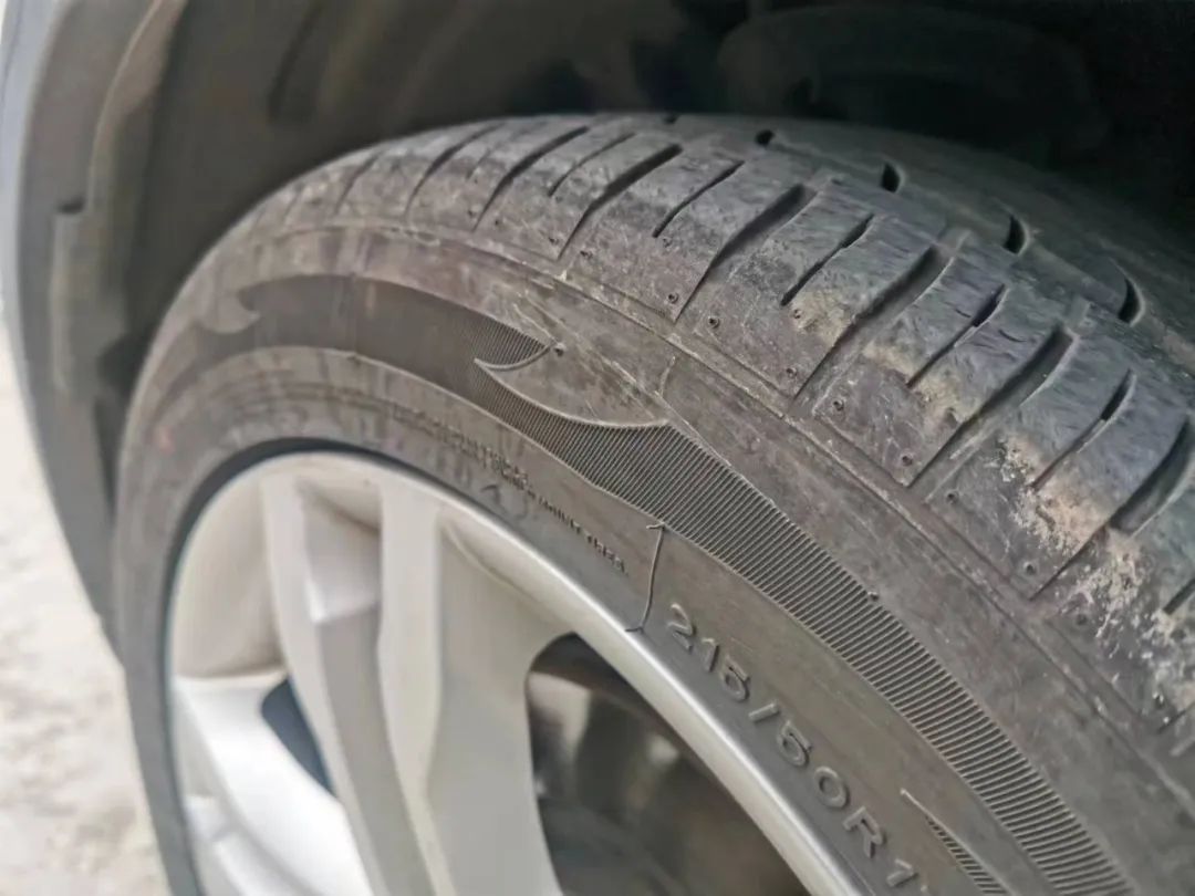 胎面鼓包,说明轮胎内部的金属线圈已经变形或断裂,此时可能随时出现爆胎的情况。