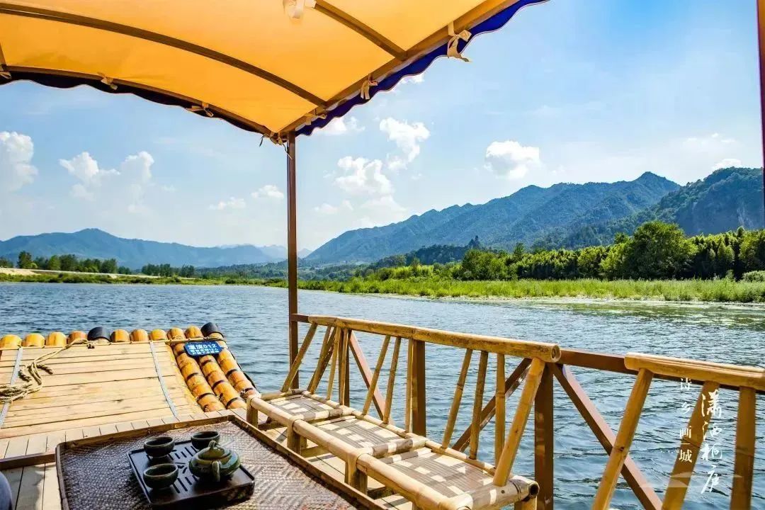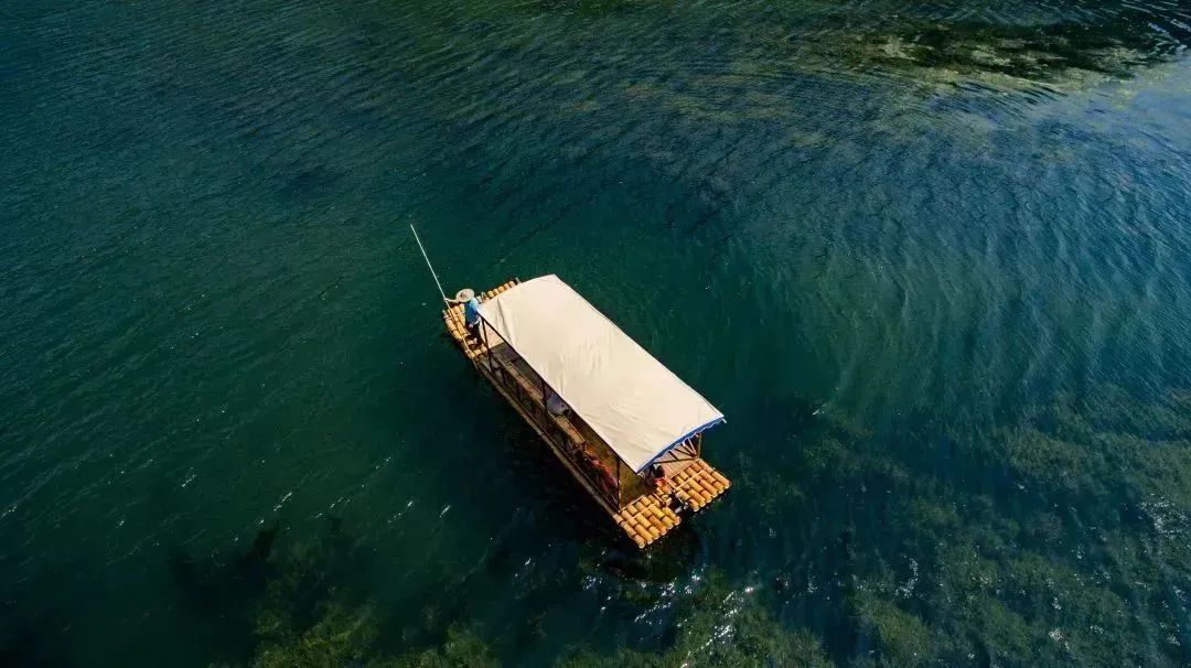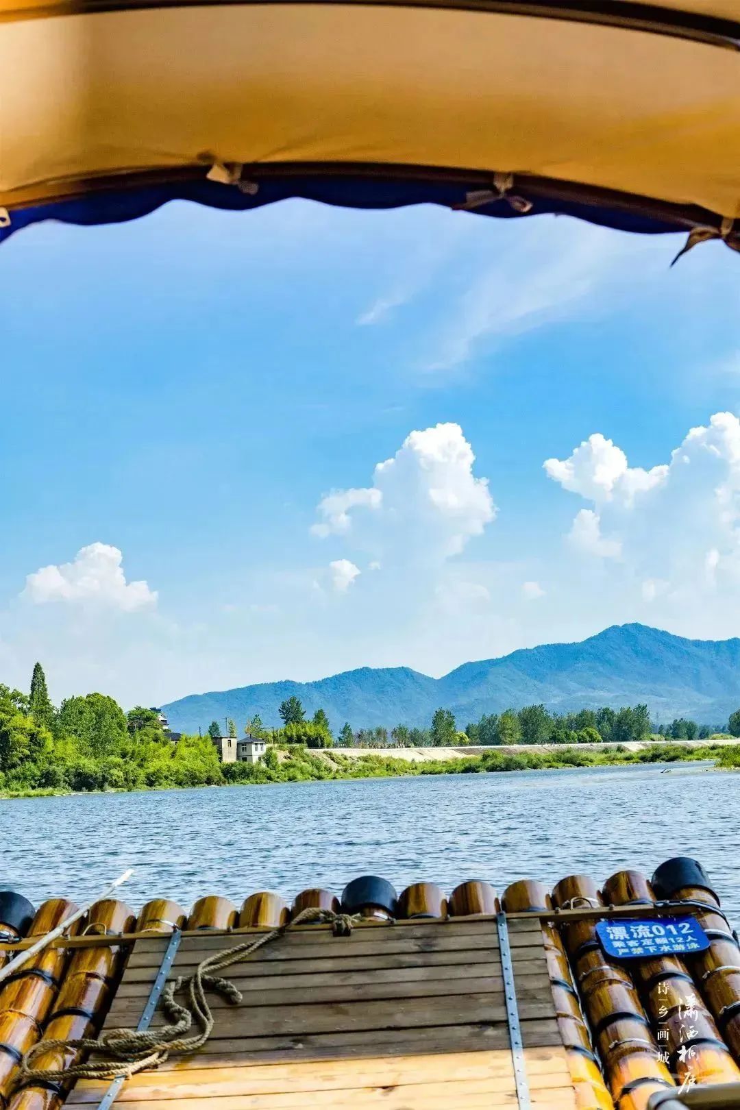 一叶竹筏悠悠荡荡顺流而下,竹筏下缓缓流动的水碧如玉,溪水流速比较平缓,竹筏漂动平稳。可以闭上眼睛,感受微风吹拂、沐浴阳光;也可以直接躺在竹筏上,感受江水摇曳的惬意。